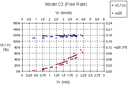 of about 200 mm for a stream velocity Vc of 2 m/s (4 knots),